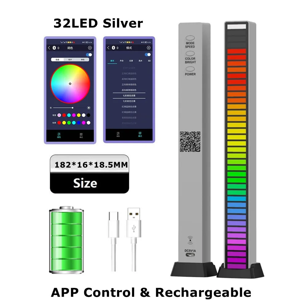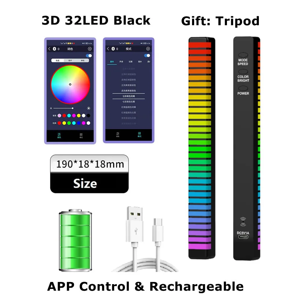 Светодиодная лента с управлением звуком, цветная колонка с 32 светодиодами, USB, RGB, музыкальсветильник льник для вечерние
