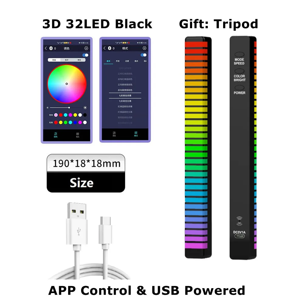 4. Тип обновления: индукция звукового поля, источник питания USB (Type _ C), может фильтровать шум окружающей среды, мобильный телефон, управление приложением: 7 статических режимов, 5 динамических режимов, 10 режимов захвата.Технические характеристикиНапряжение: 5 В/1 а постоянного токаВстроенный аккумулятор 300мАЗарядка: USB type_cМатериал: акрил + ПВХСветильник: 32 светодиода на светильникЦвет: Дневной свет белый + RGB/Частотная характеристика: 100-16 кГц