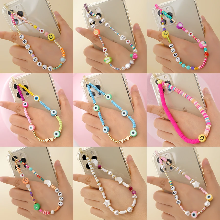 Ремешок с бусинами для телефона, украшения для телефона для женщин, смайлик, аксессуар для телефона, 2021