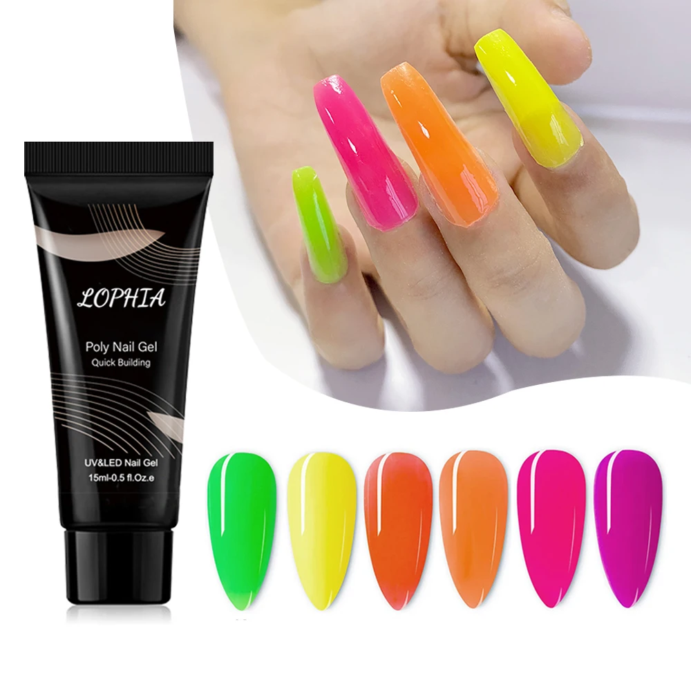 Полигель для ногтей LOPHIA, 15 мл, неоновый цветной акриловый гель, гель для быстрого наращивания ногтей, для наращивания ногтей, для маникюра, базового и топового покрытия