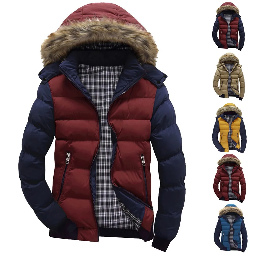 Теплая мужская парка TELOTUNY сезона осень-зима 2021, повседневная куртка на молнии с капюшоном и карманами, модная цветная верхняя одежда в стиле пэчворк с длинным рукавом