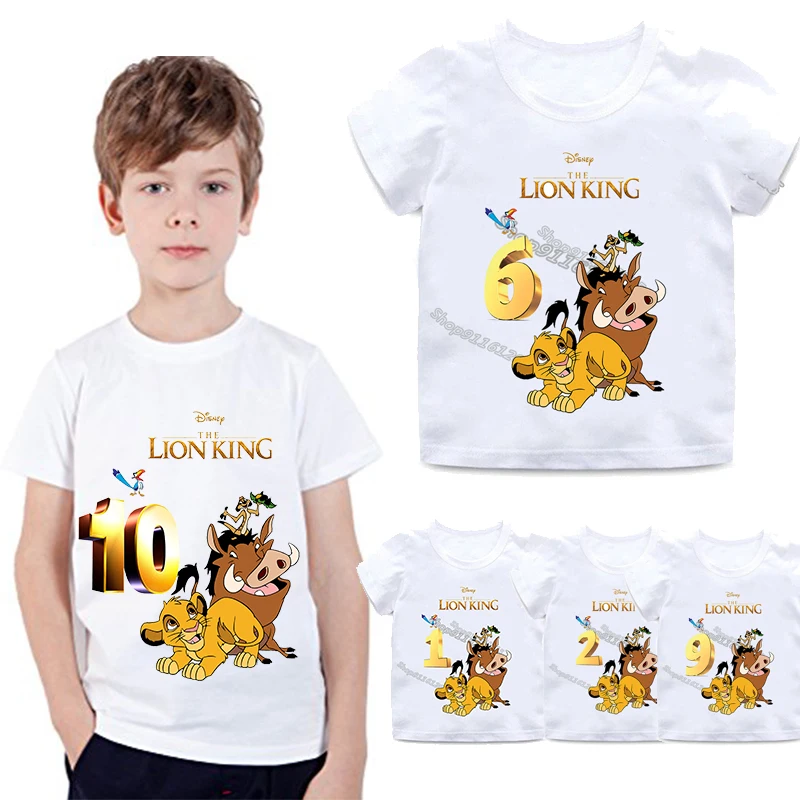 Детские футболки с героями мультфильмов Король Лев, Hakuna Matata, детская одежда с короткими рукавами, одежда для мальчиков, цифровая футболка на день рождения