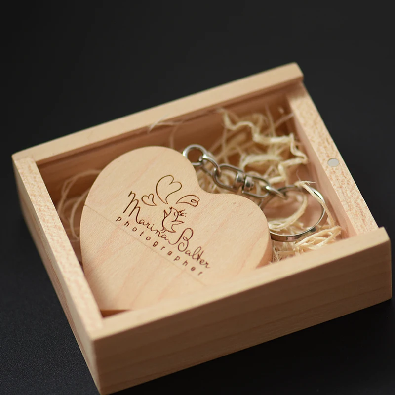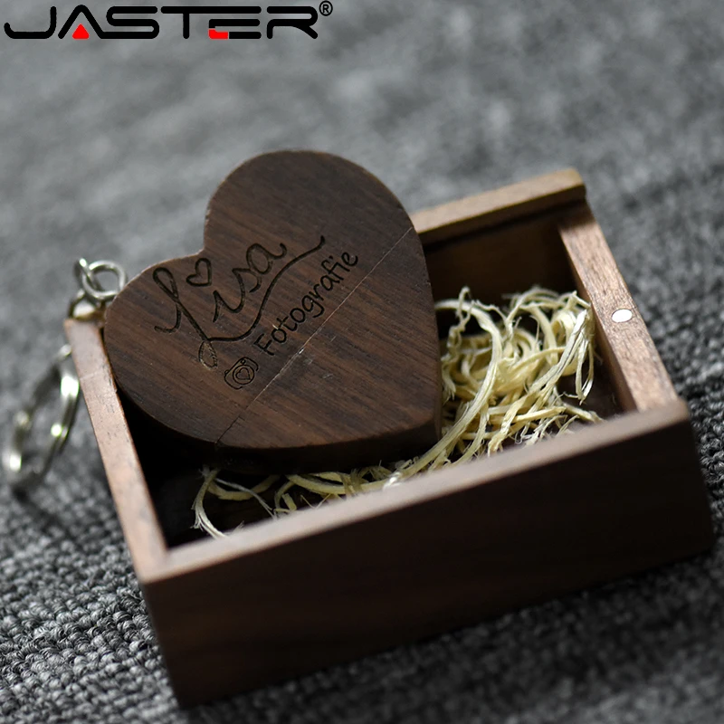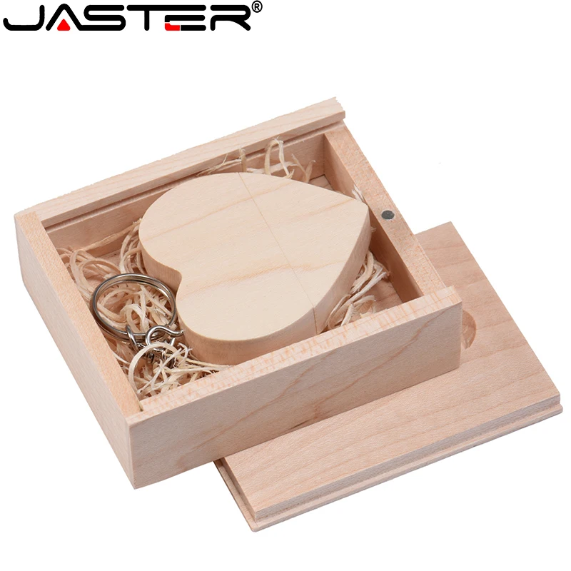 Флэш-накопитель JASTER, 2,0 дюйма, флэш-накопитель с логотипом дюйма, 128 ГБ, деревянное сердце, USB + коробка, 64 ГБ, кленовый диск, свадебные подарки