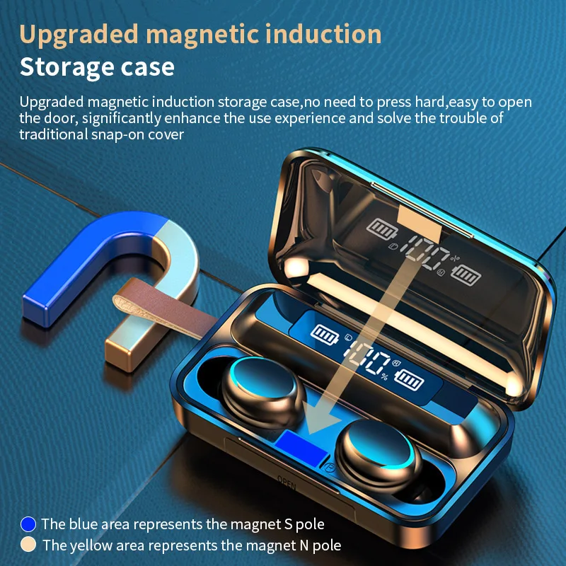 Bluetooth-наушники F9-6, беспроводные наушники, стерео наушники, спортивные наушники с микрофоном, с зарядным боксом для смартфона