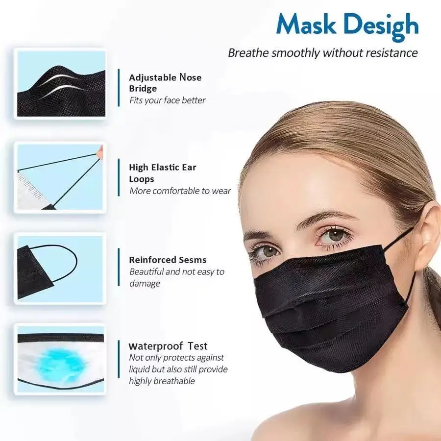 10-500 шт. Одноразовые черные бриллиантовые маски с 3-слойным фильт...