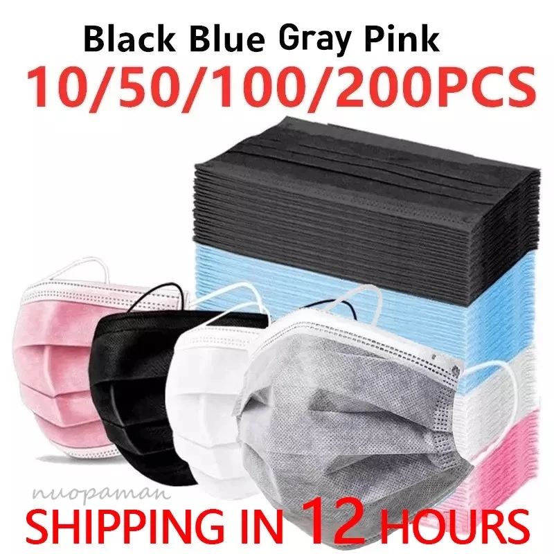 10-500 шт., одноразовые черные маски для лица, 3 слоя