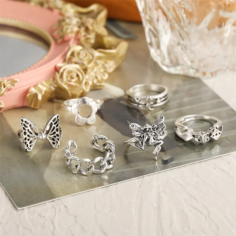 Набор колец на палец в стиле панк, цветок, фея, цветок, бабочка для...