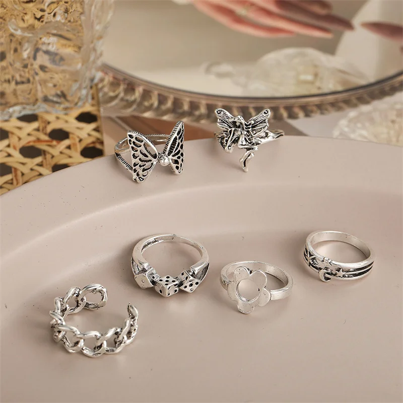 Кольцо на палец в стиле панк с бабочкой и цветком, 5 шт.компл. для ...