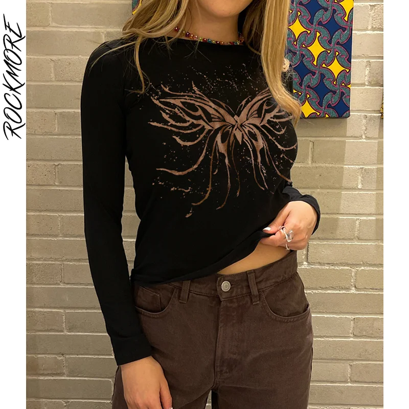 Женская футболка с длинным рукавом Rockmore, Винтажная футболка с принтом бабочек, в стиле гранж, в стиле 90-х, для осени
