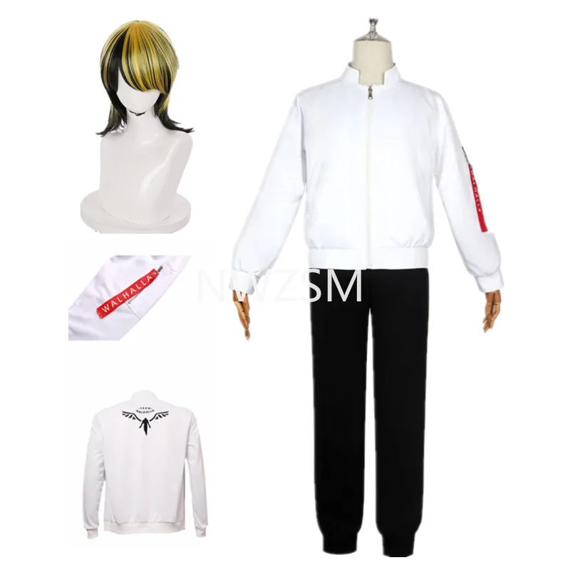 Костюм для косплея ханемия казутора из аниме Токийский мстители и парик, белое пальто, форма Вальгаллы, бейсбольная куртка