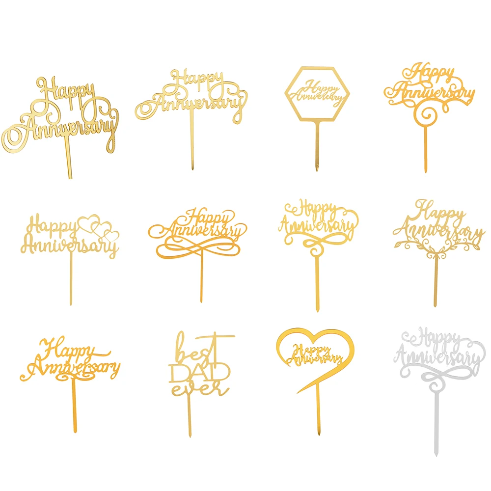Акриловый Топпер для торта на день рождения, золотые и серебряные украшения для тортов, украшение для годовщины, свадьбы, семейного собрания вечерние вечеринки