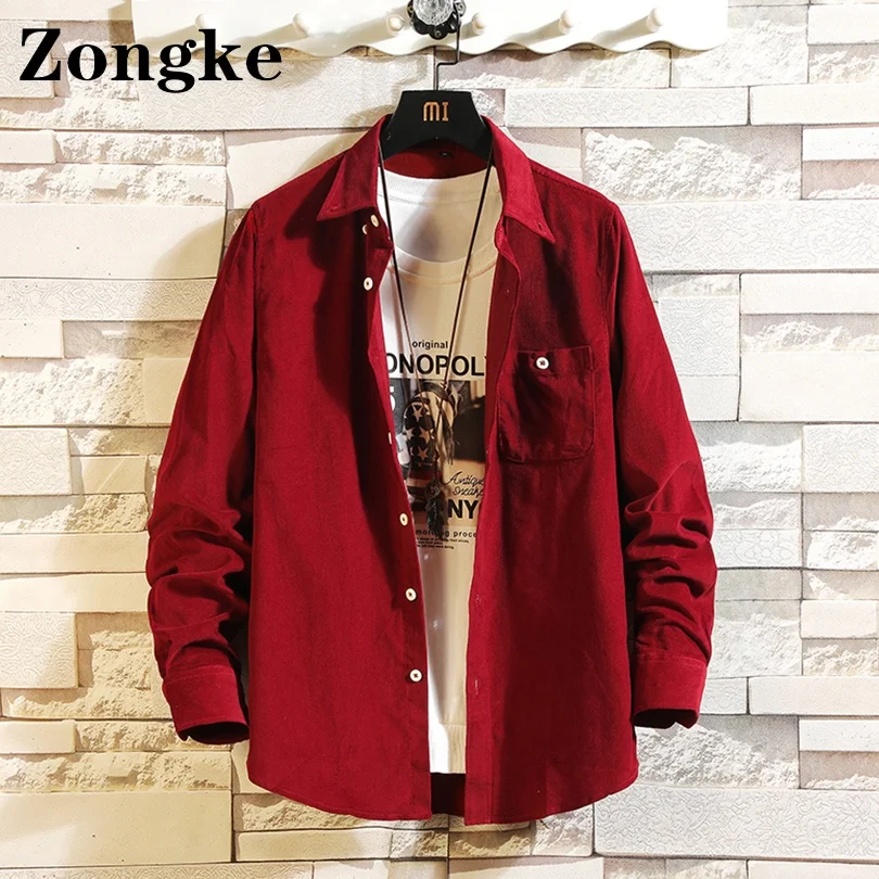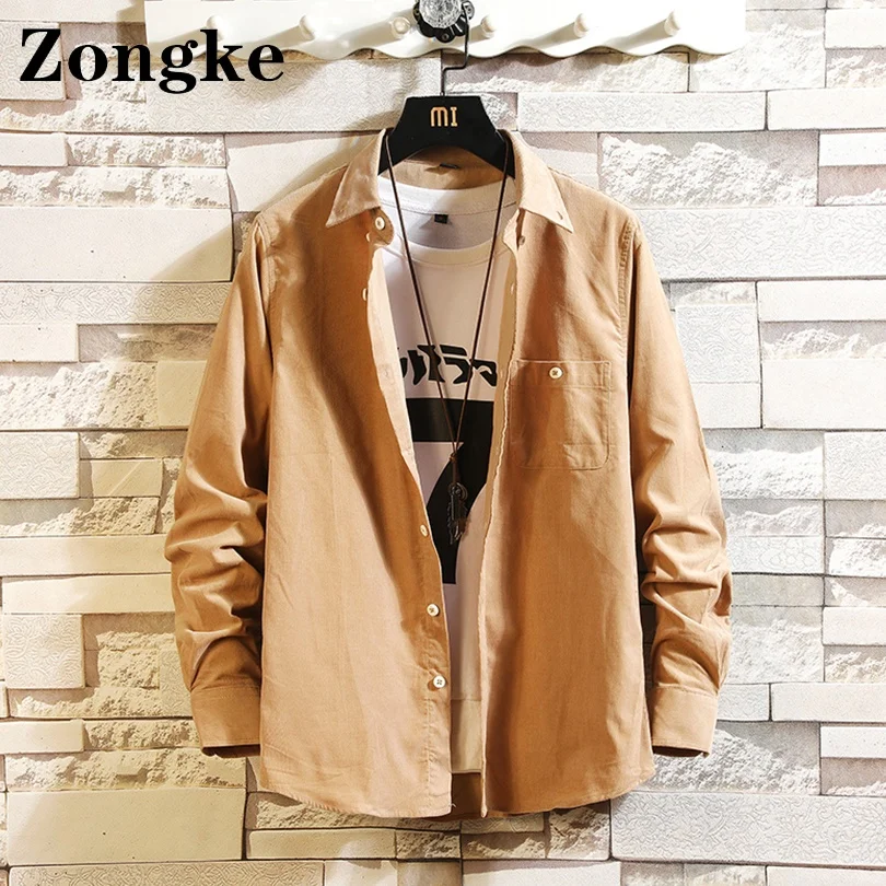 Рубашка Zongke Вельветовая мужская с длинным рукавом, дизайнерская одежда, винтажная одежда 5XL, мужские рубашки, осень 2021