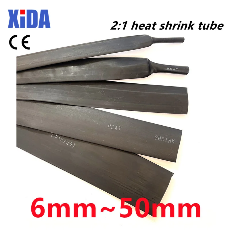 Термоусадочные трубки 2:1, черные прозрачные термоусадочные трубки для проводов, 20 мм, 30 мм, 40 мм, 1 метр