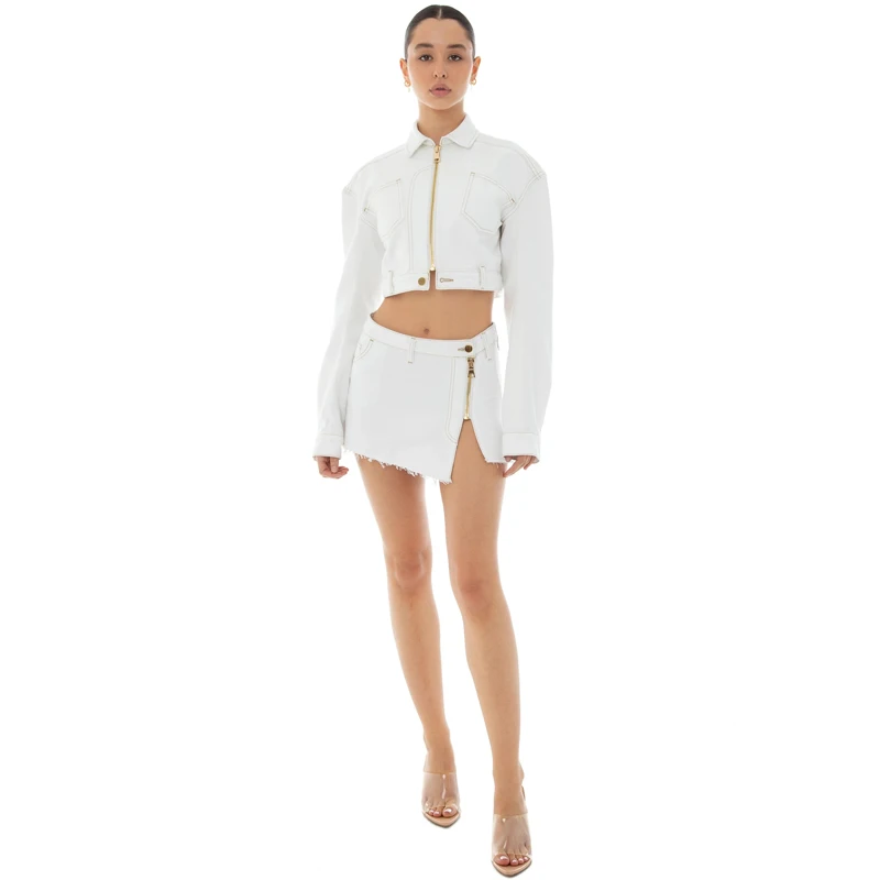 Hugcitar 2021 однотонный бандажный свитер на молнии мини-платье комплекты из 2 предметов осенне-зимние женские модные уличные наряды повседневные Y2K