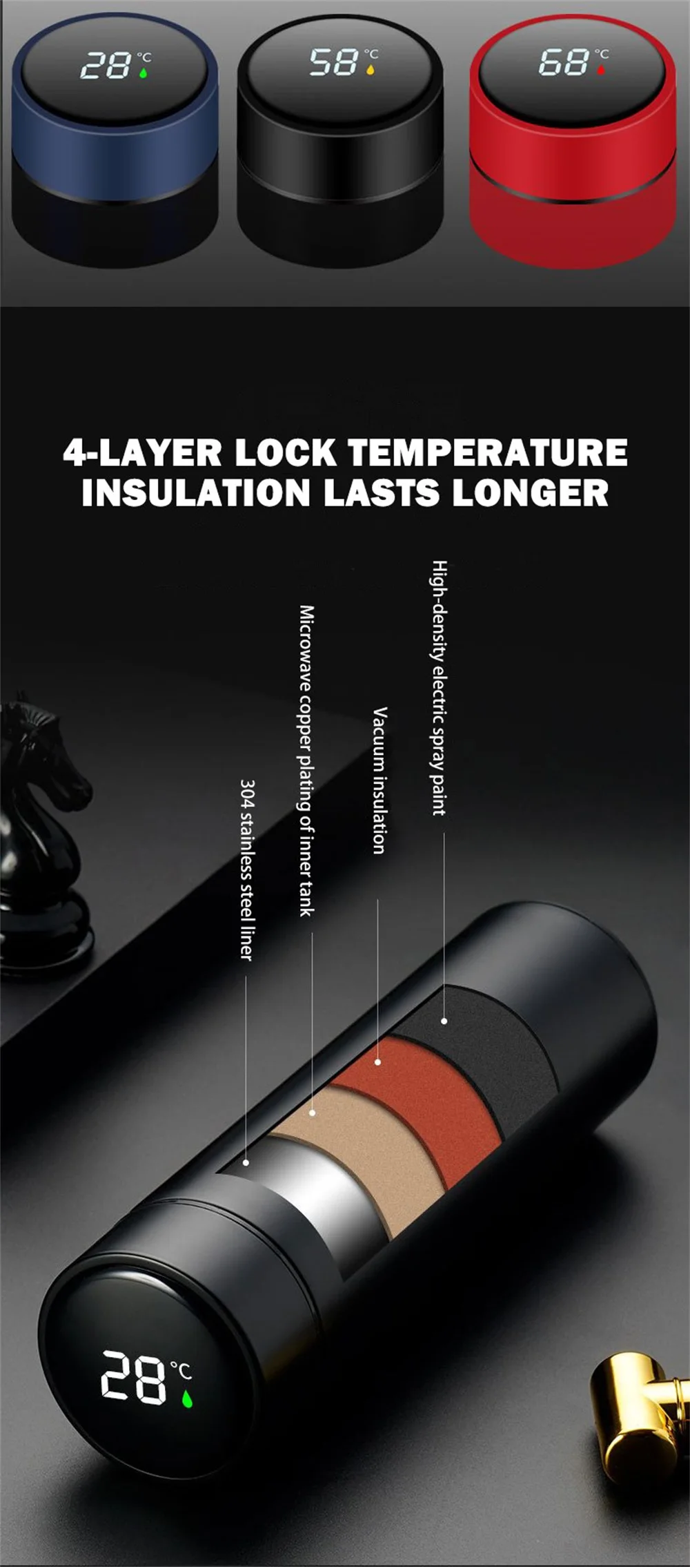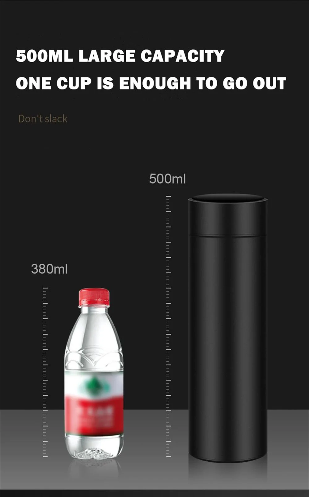 Особенности1. Портативный и прочный. Идеально подходит для путешествий, активного отдыха, автомобиля, офиса, дома, школы, пикника, горячих йога, пеших прогулок, кемпинга и т. д.2. С сенсорным ЖК-экраном HD для быстрого отображения температуры воды в реальном времени. Позвольте вам пить воду, которая наиболее подходит для температуры в любое время и в любом месте.3. Изготовлен из нержавеющей стали 304, двухслойный вакуумный дизайн, безопасный, без BPA и экологически чистый, без запаха и легко моется. Он может держать горячую или холодную воду в течение 12 часов.4. Эта Вакуумная бутылка для воды также является хорошим контейнером для кофе, соковыжималки, молока, пива, напитков и ежедневного увлажнения. Лучший подарок для семьи и друзей. Подарок на день рождения, подарок на день Святого Валентина-хороший выбор.Спецификация:Емкость: 500 млМатериал: нержавеющая сталь 304Посылка включает в себя: 1 термос