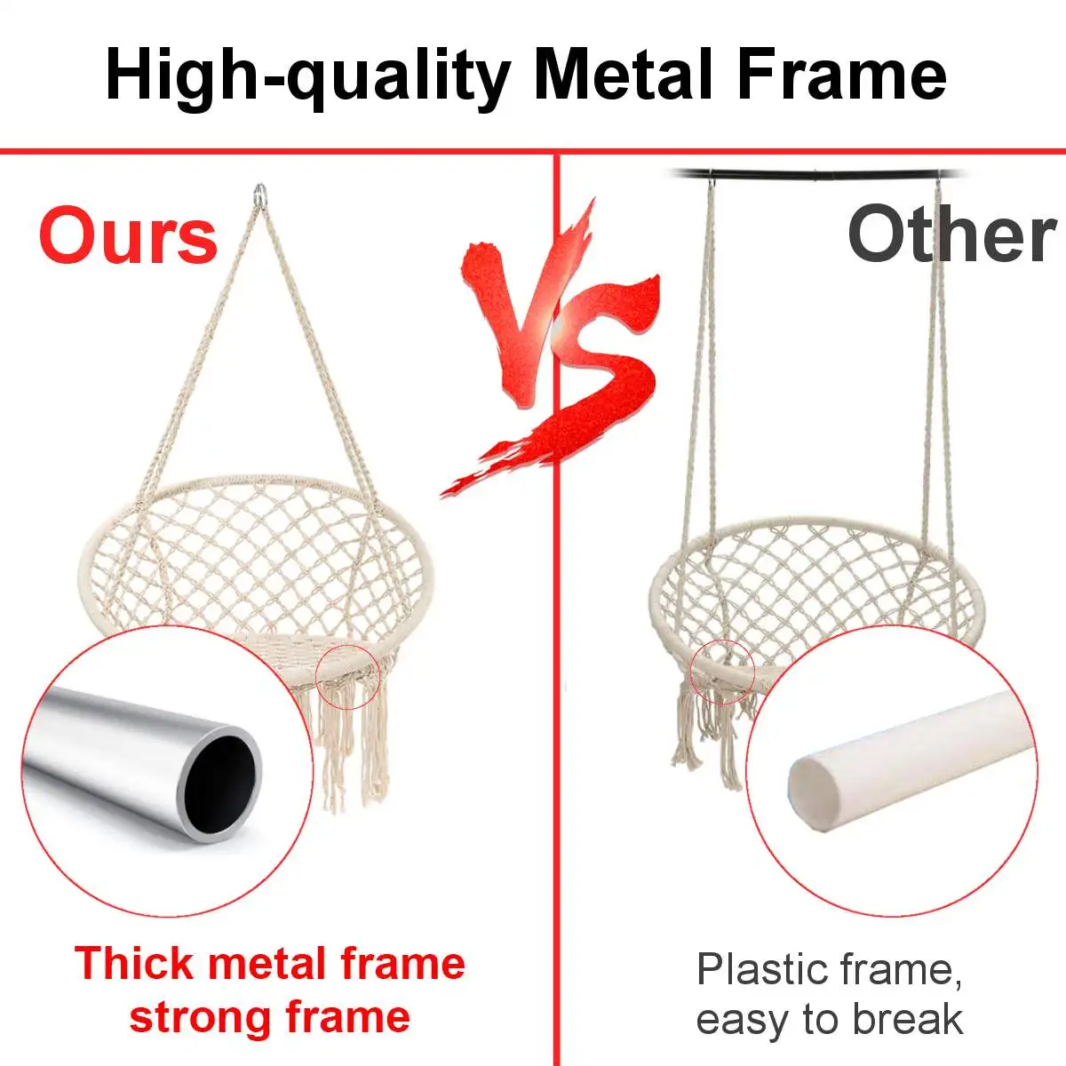 Технические характеристики:Цвет: бежевыйМатериал: хлопковая веревка, железный обручМаксимальный вес пользователя: 120 кг (260 фунтов)Малый диаметр цепи: 60 см/23,6"Большой Диаметр цепи: 80 см/31,5"Высота: 120 см/47,2"Особенности и преимущества:● Гамак стул макраме качели-Расслабьтесь и расслабьтесь с хан ging макраме гамак качели стул● Удобная и расслабляющий-Макраме сетка-качели кресло может использоваться в качестве светильник колыбели и качания стул для чтения или Расслабляющая медитация стул, отдых под закатом расслабиться у бассейна, или гостиная на палубе-погрузитесь в уютное «Cocoon» во время чтения-Слушайте звук дождя, сверчков, Птица щебетает, или тихая ночь звездного взгляда, и т. Д.
