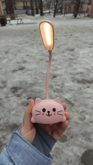 Милый небольшой светильник на встроенных аккумуляторах. Лампа небольшая по размеру и высоте. Светит в одном режиме. Заряжается сзади от кабеля, который идет в комплекте. Саму вилку для подключения кабеля нужно докупить, ее нет в комплекте. Можно использовать другую от телефона или любой другой техники, которая заряжается через USB. Пришла в срок в картонной коробке. Единственный замеченный минус - это жесткий переключатель сзади. Удобнее, когда лампа включается легким касанием к кнопке впереди светильника. А так нужно взять светильник в руки, перевернуть и перещелкнуть, чтобы включить или выключить. Подойдет для детской комнаты. Продавец надежный. Спасибо.