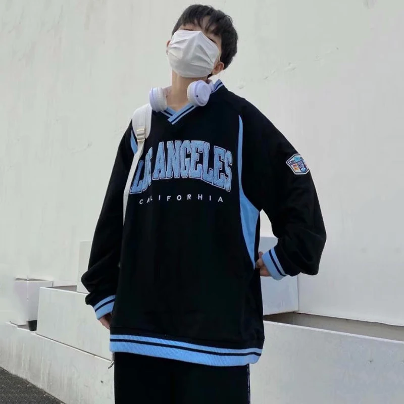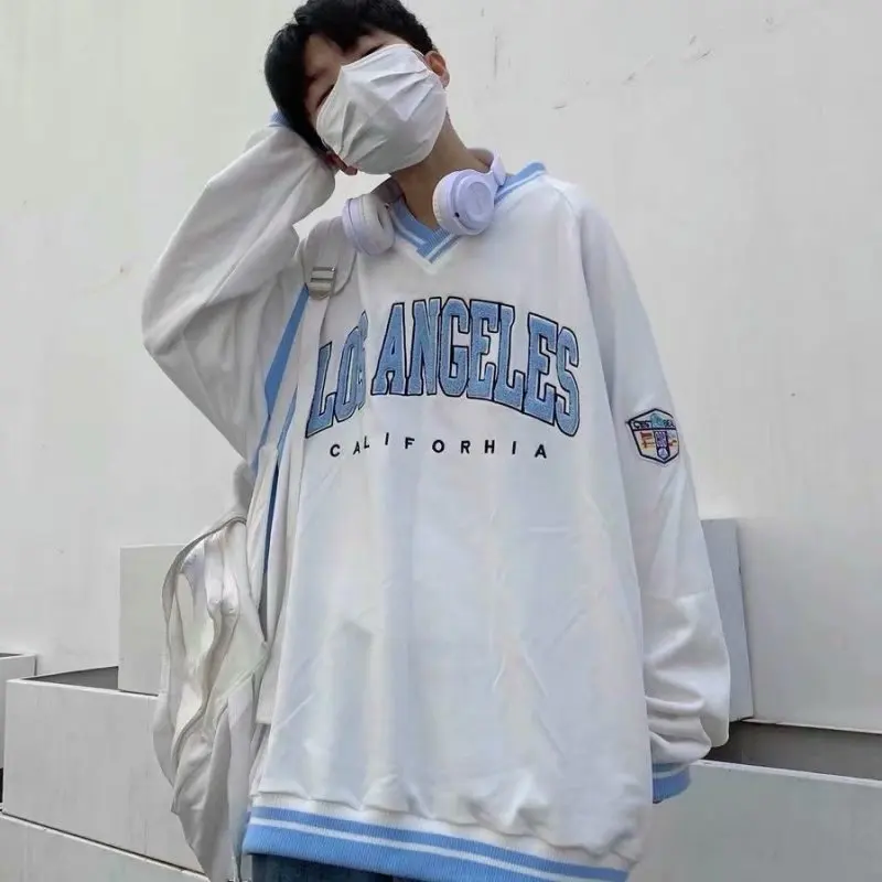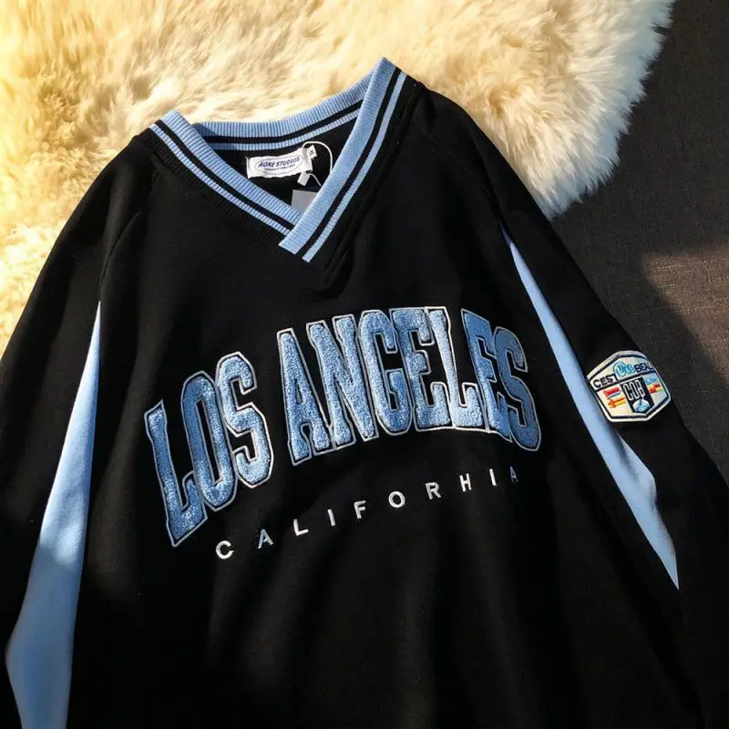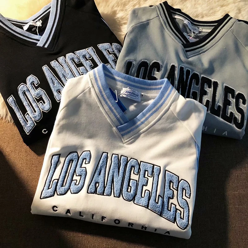 Толстовка с вышивкой в стиле ретро, Harajuku, с V-образным вырезом,...
