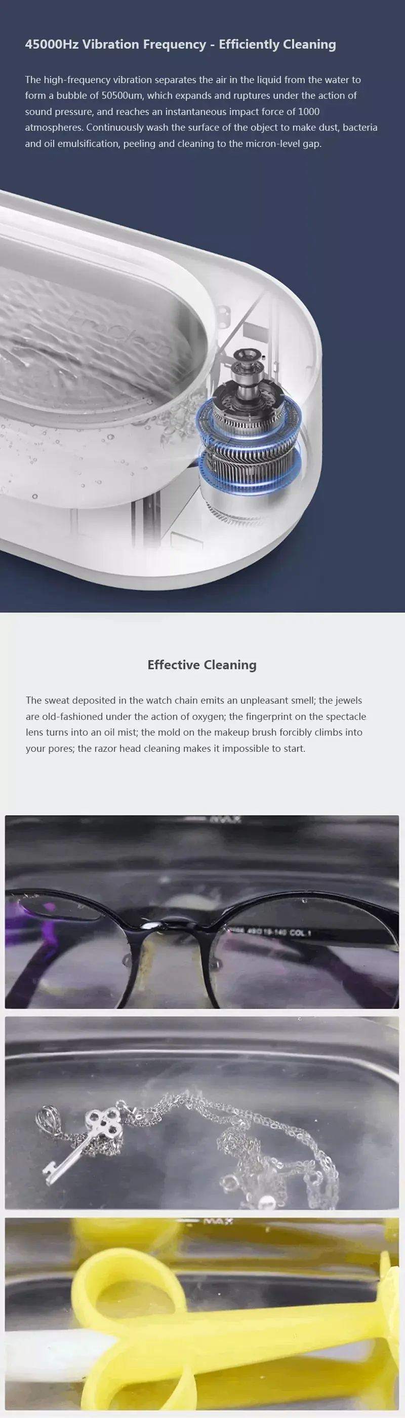 Ультразвуковая Очистительная Машина 45000 Гц, высокочастотный Вибрационный очиститель, Очистка ювелирных изделий, очков, часов от Xiaomi Youpin