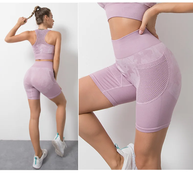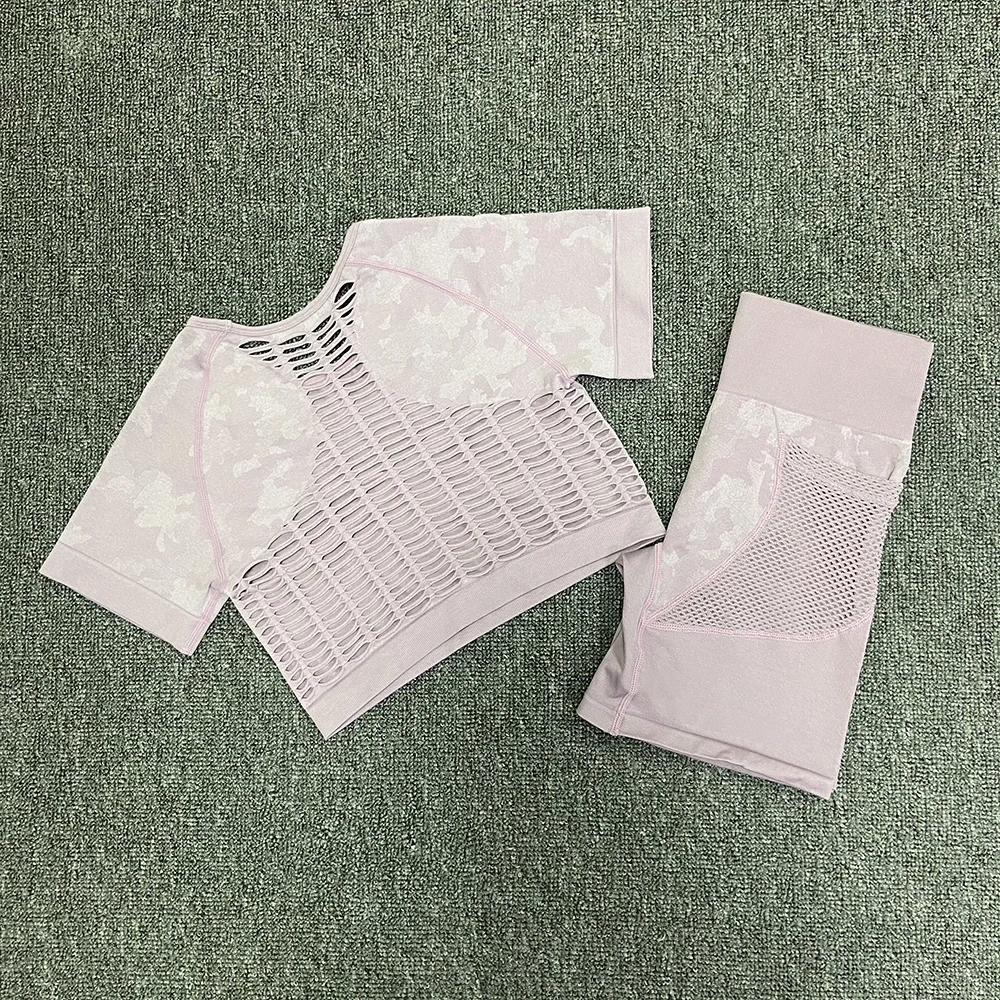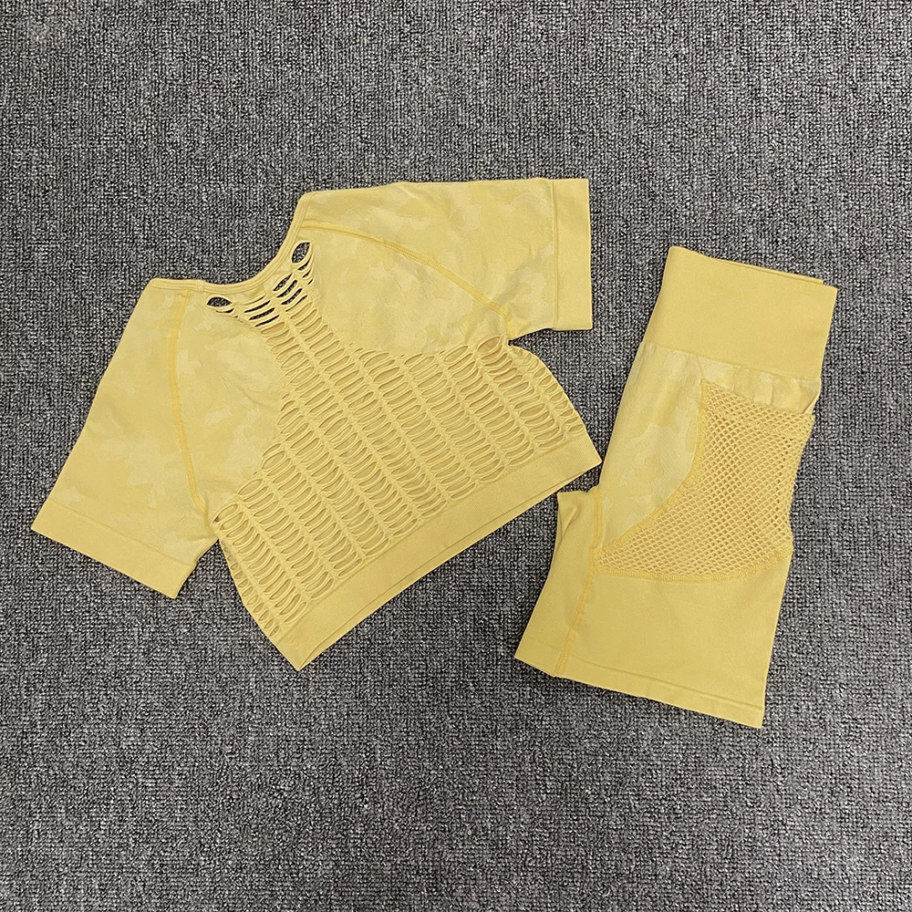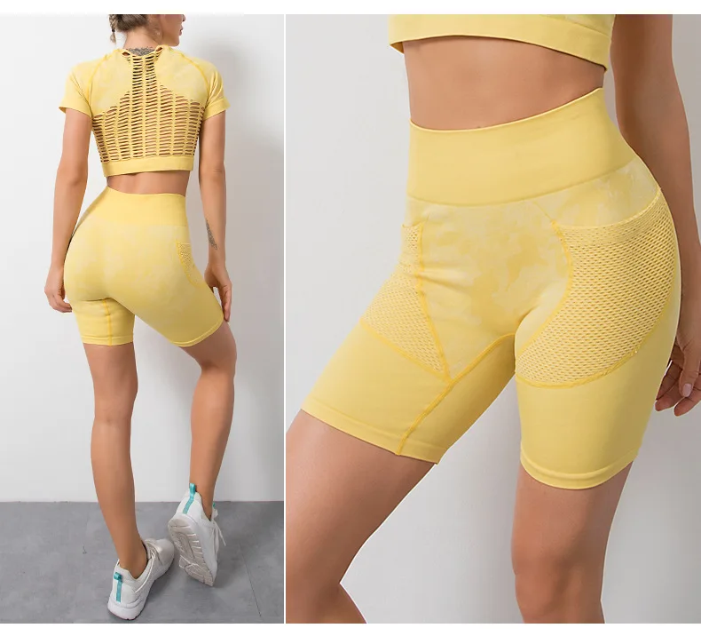 Бесшовный Женский костюм для йоги из 2 предметов, спортивный бюстгальтер с коротким рукавом + шортыбрюки, спортивный костюм для фитнеса, тренировочный фитнес-костюм, спортивная одежда