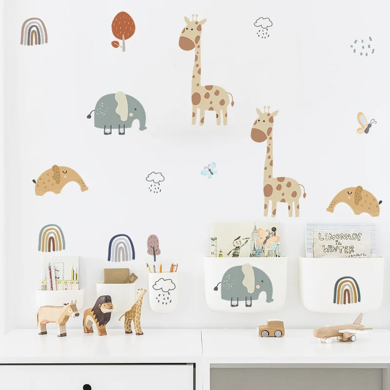 Мультяшные Животные наклейки на стену для детской комнаты детская спальня декор стен жираф слон наклейки на стену домашний декор обои