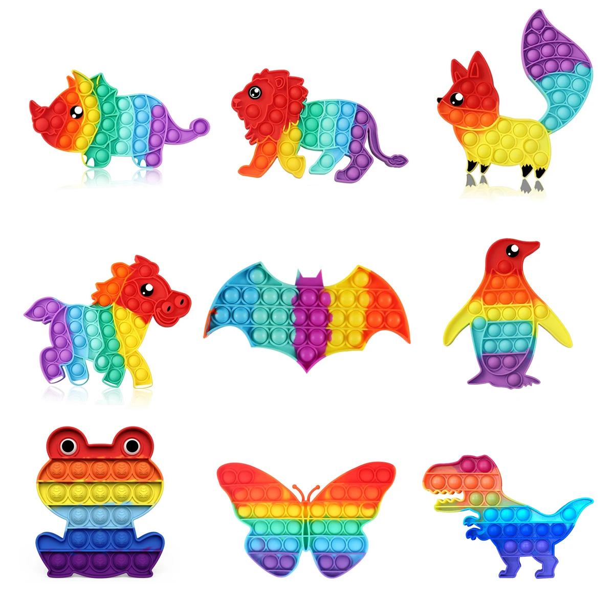 Популярные Животные компрессионные игрушки Детские компрессионные игрушки простые ямочки радужные нажимные Пузырьковые пальчиковые игрушки