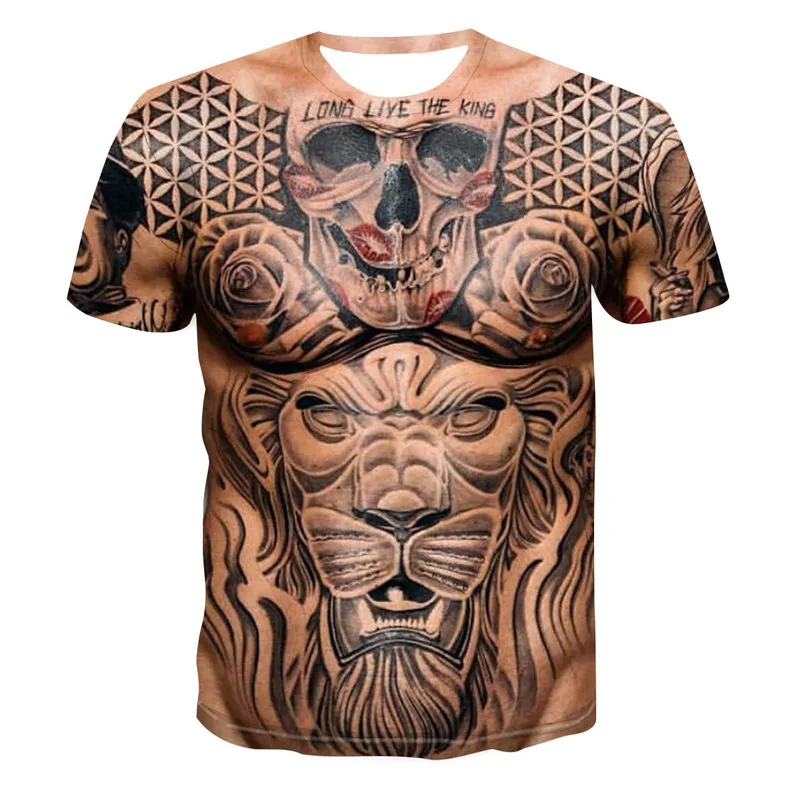 Мужская футболка sSleeve, летняя футболка с 3D татуировкой для фитн...