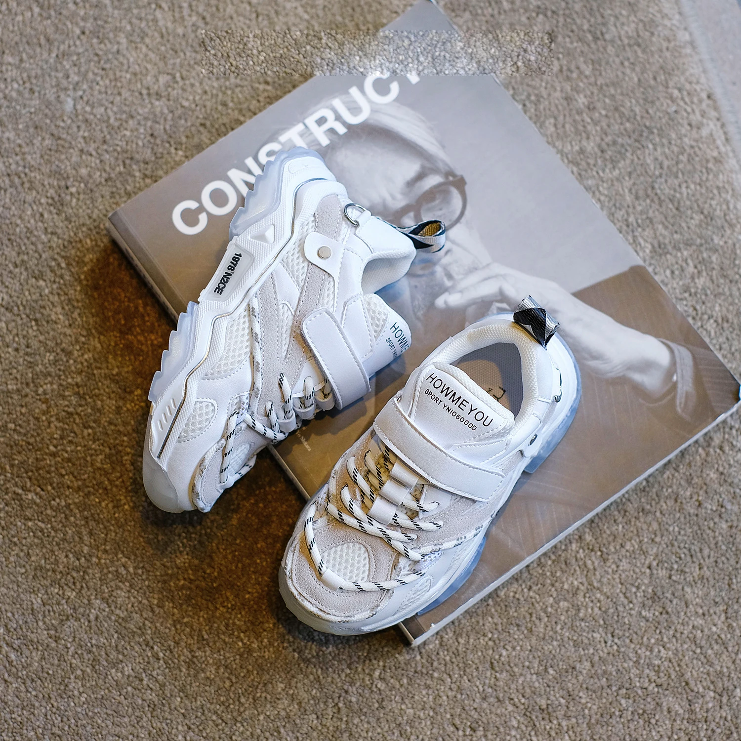 Осенние детские массивные кроссовки для маленьких мальчиков, белая сетчатая обувь, детские Брендовые спортивные кроссовки, модные повседневные кроссовки для девочек, мягкие кроссовки