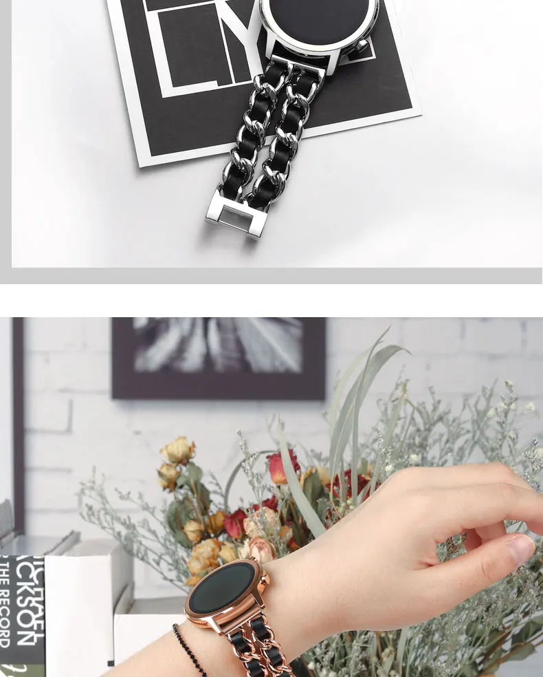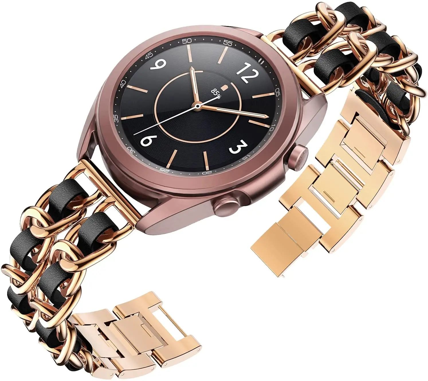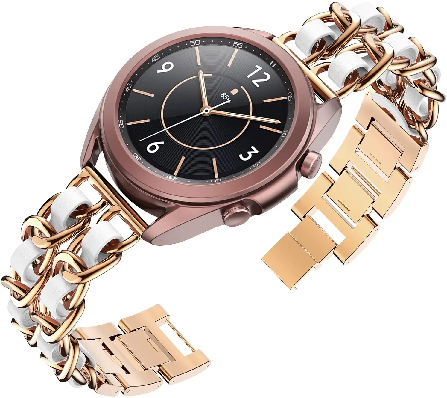 Металлический кожаный ремешок для samsung Galaxy watch 3 Avtive 2 Huawei watch GT GT2, модный трендовый браслет-цепочка для Amazfit GTR, 22 мм 20 мм
