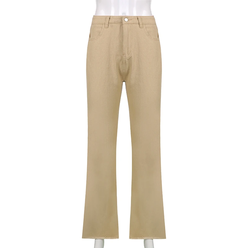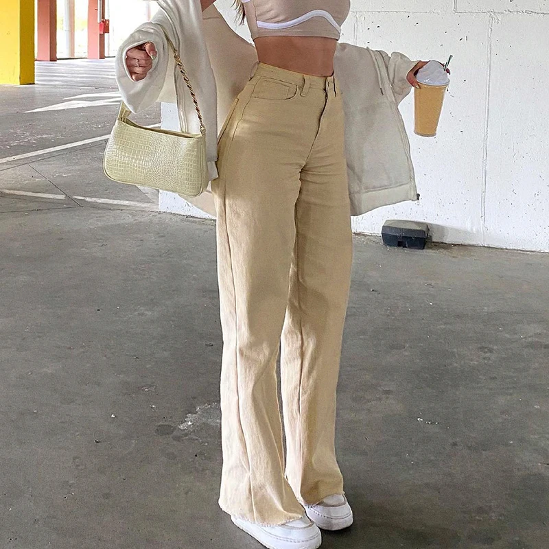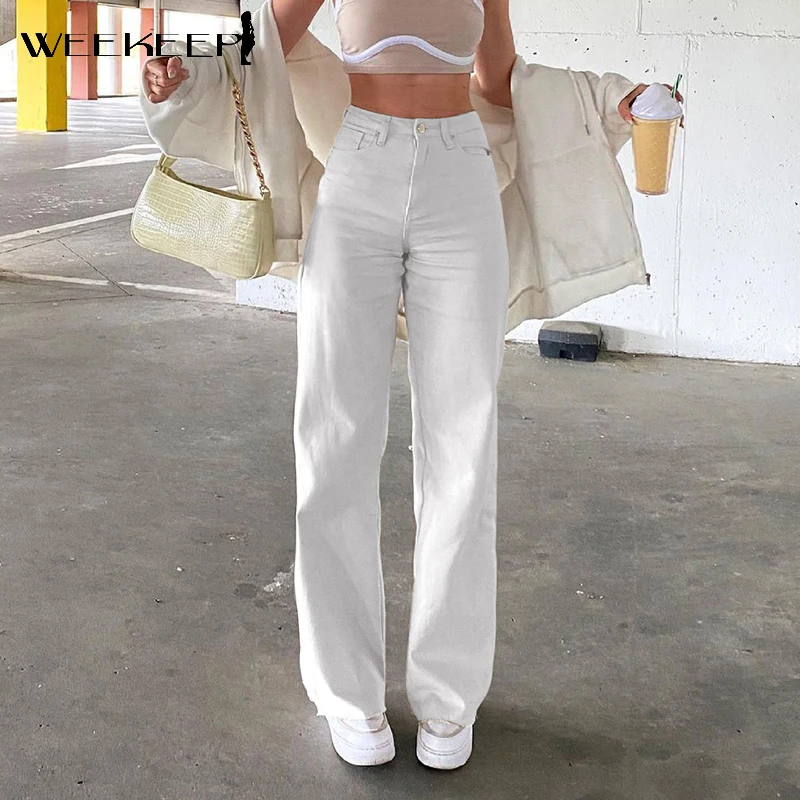 Женские джинсы с высокой талией Weekeep, винтажные повседневные Прямые брюки с высокой талией в уличном стиле, Летние Элегантные классические брюки Harajuku