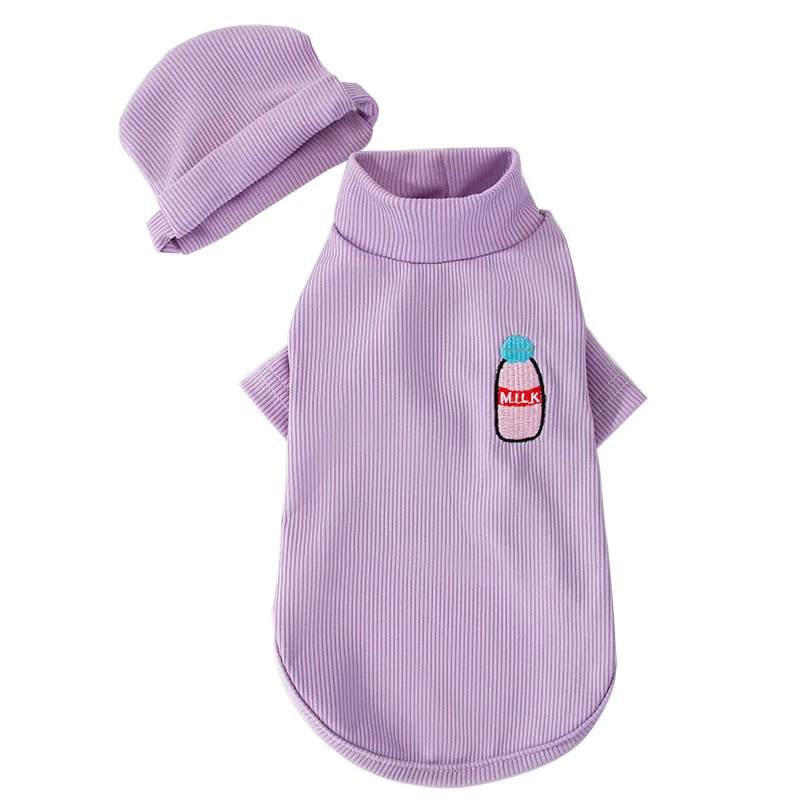 Осенне-зимняя рубашка с вышитыми бутылочками для собак, костюм с капюшоном, осенняя одежда для маленьких и средних собак