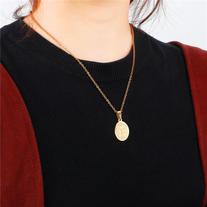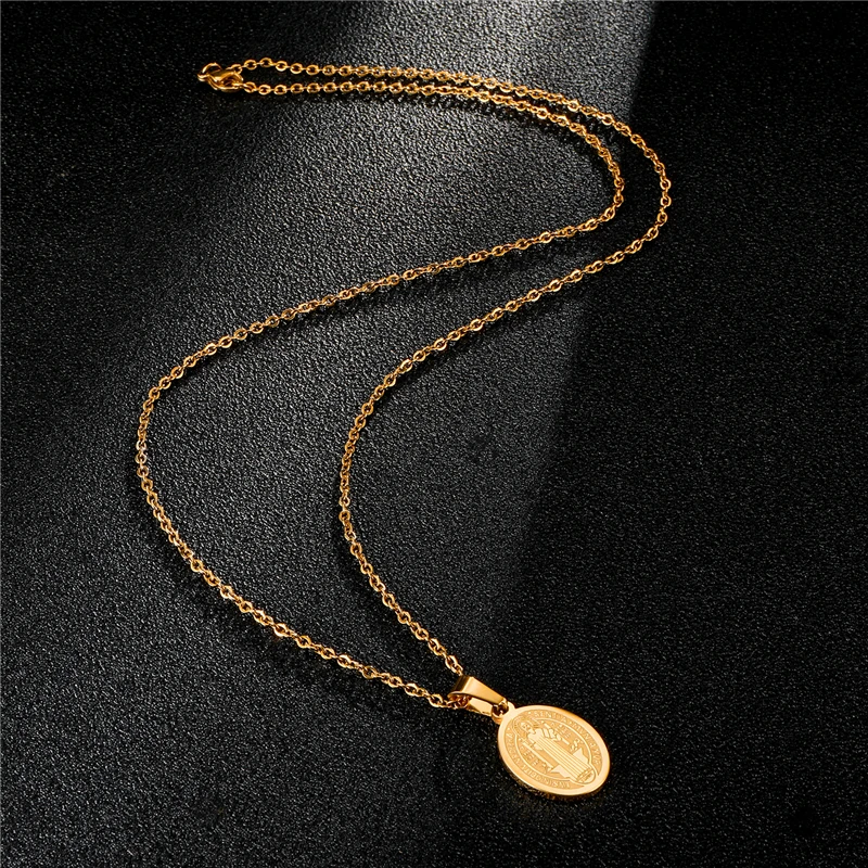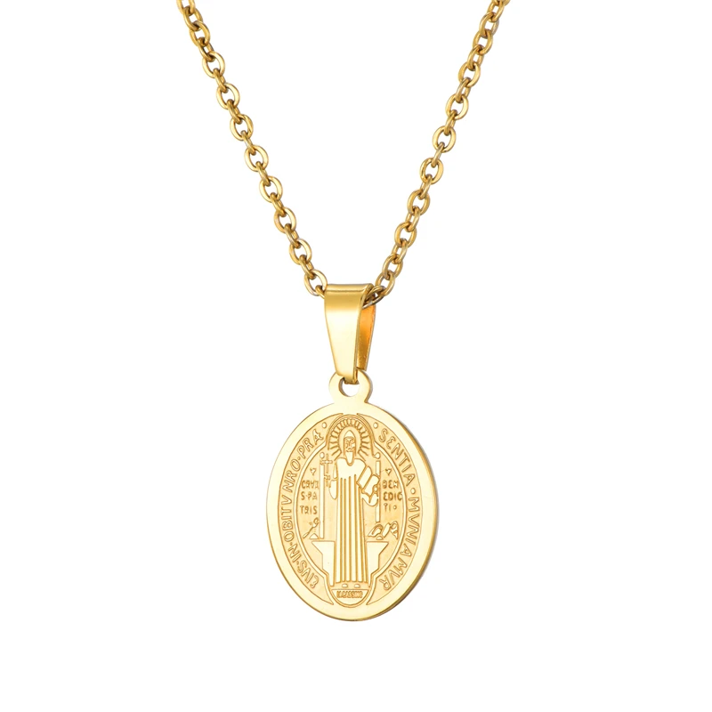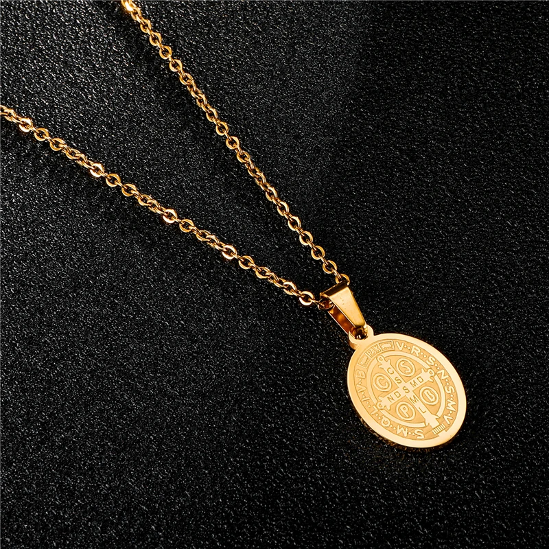Религия орден Святого Бенедикта ожерелья для мужчин и женщин золотой цвет нержавеющая сталь Сан Бенито медаль кулон ожерелье длинное колье