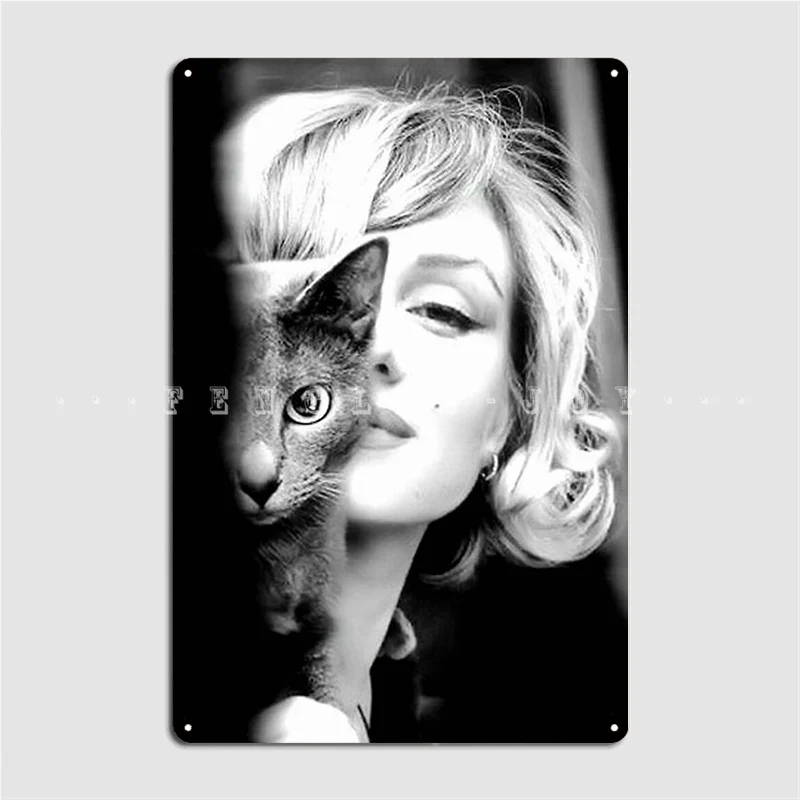 Marilyn Monroe с кошкой, винтажная металлическая табличка, Настенная роспись, дизайн клуба, бар, настенная фотография, плакаты