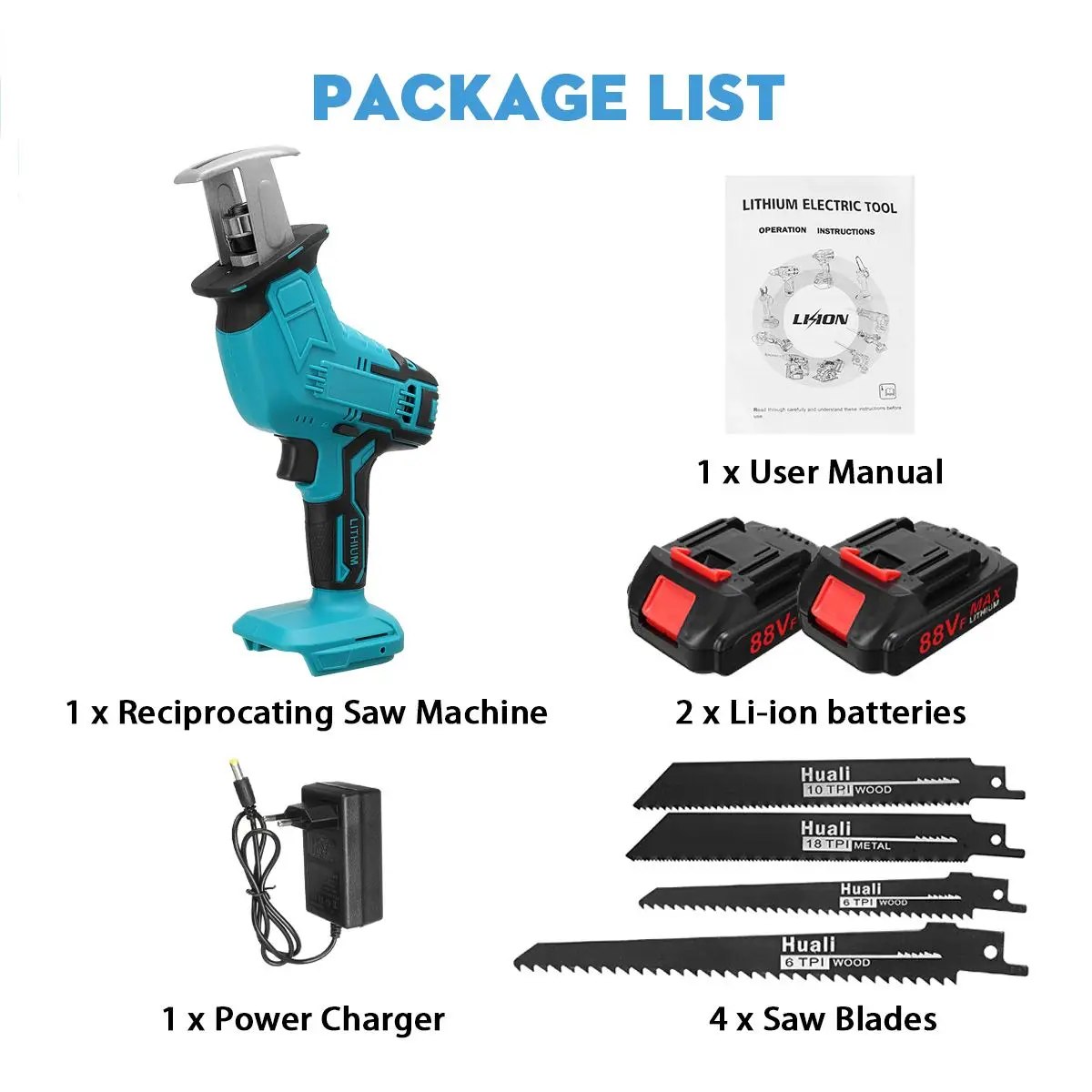 Беспроводная Сабельная пила, 88 в, 3999 обмин, электрическая пила с 4 лезвиями, цепные пилы, электроинструмент для резки, 2 батареи, аккумулятор для Makita 18 в