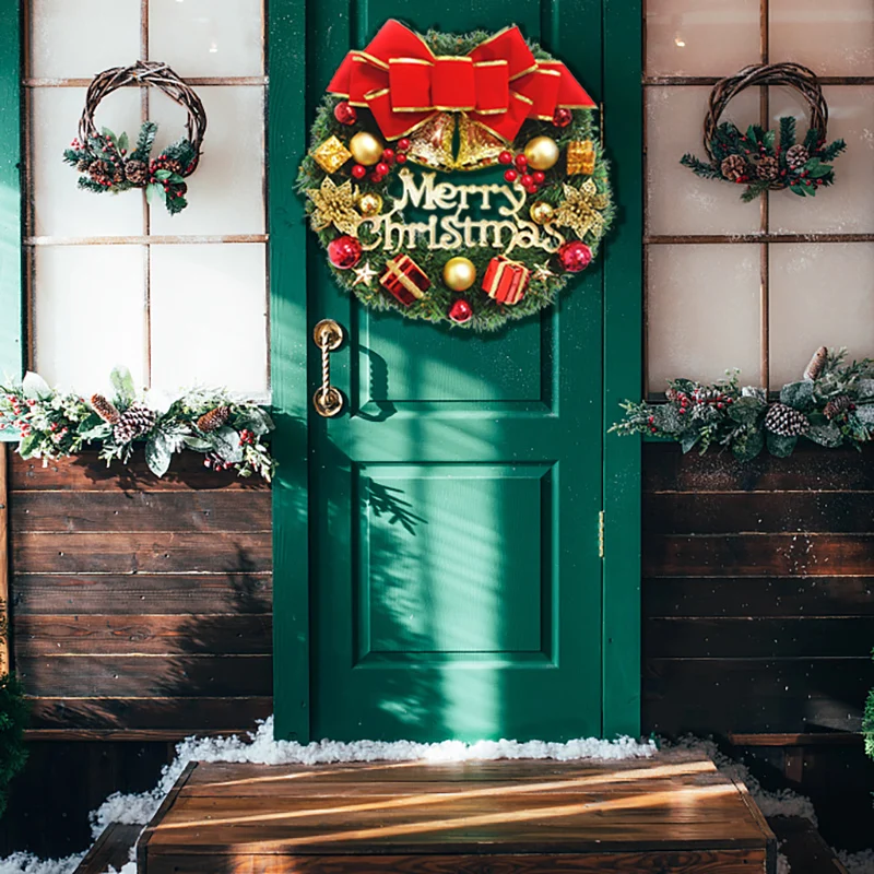 Искусственная композиция 30 см, Рождественский венок, ветка Ель, входная дверь, для дома, Новогодняя фотогирлянда