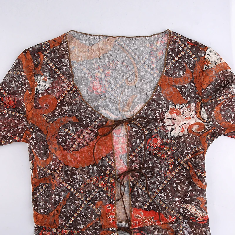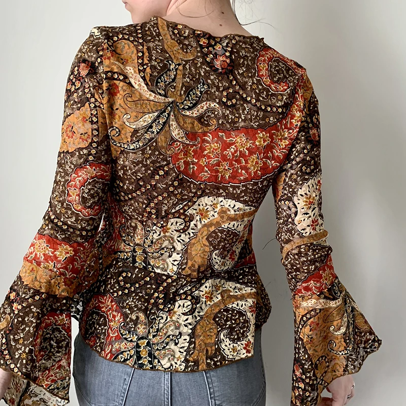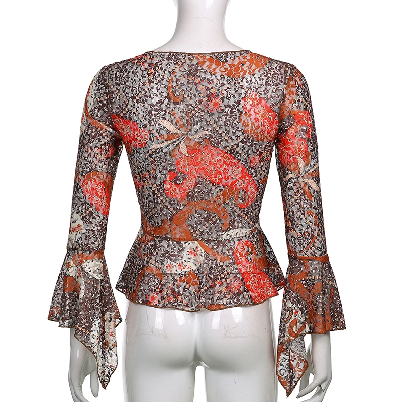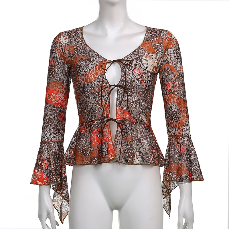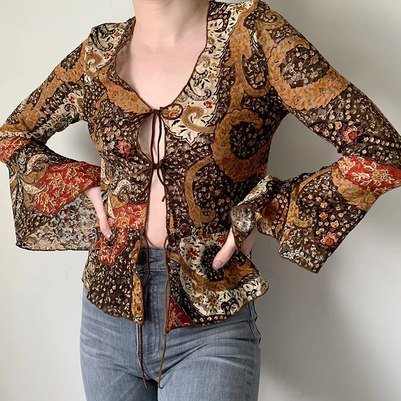 Женская футболка в стиле Харадзюку, Винтажная Футболка с принтом феи и гранж, с расклешенными рукавами и завязками, осенний кардиган в стиле ретро