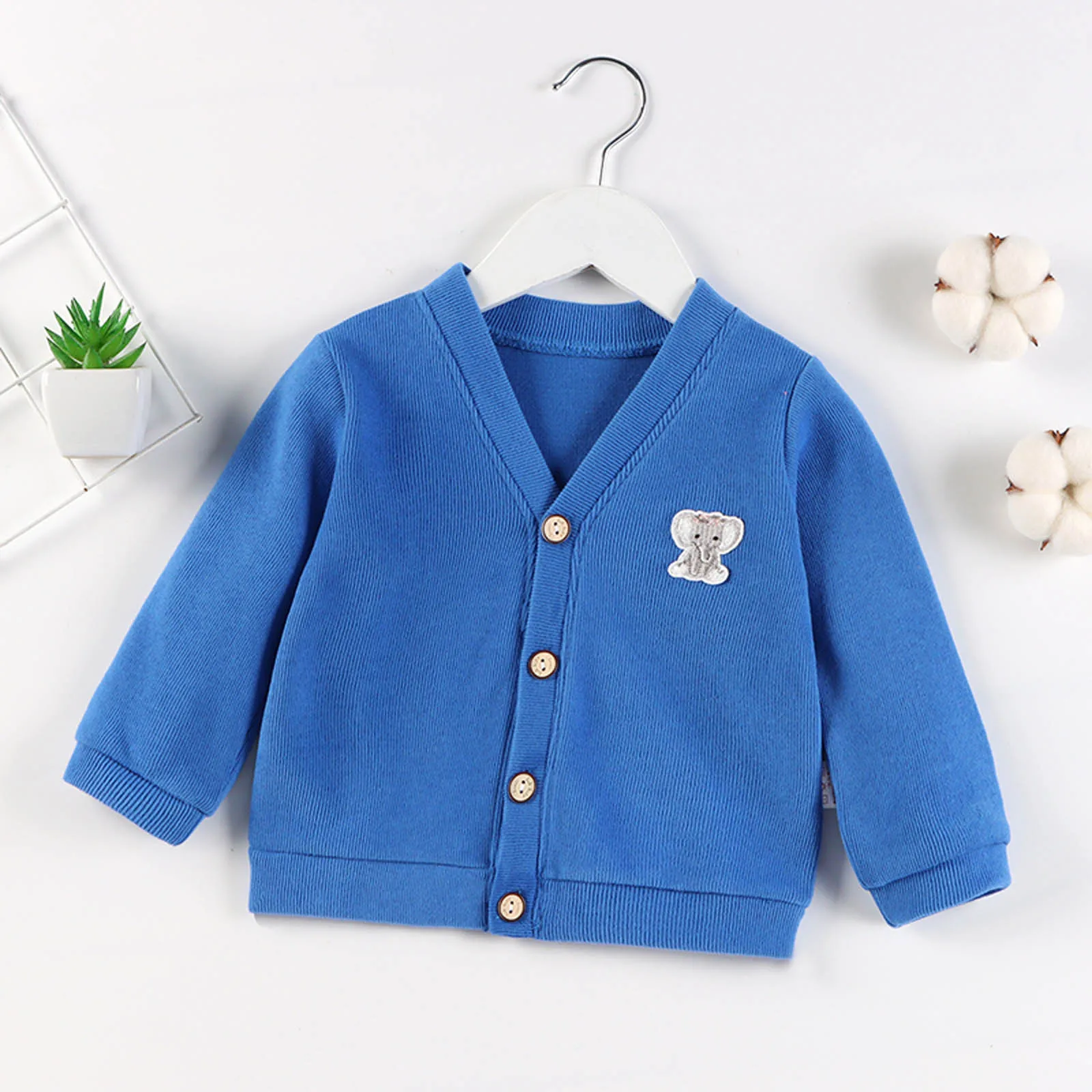 Осенне-зимняя теплая верхняя одежда, куртки, милый однотонный плотный вязаный кардиган на пуговицах с ушками для маленьких мальчиков и девочек 1-6 лет