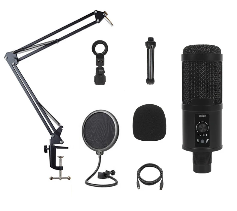 Профессиональный студийный микрофон USB Комплект конденсаторанабор микрофонов для звуковой картымикрофон с шумоподавлениемзвуковая карта в реальном времени