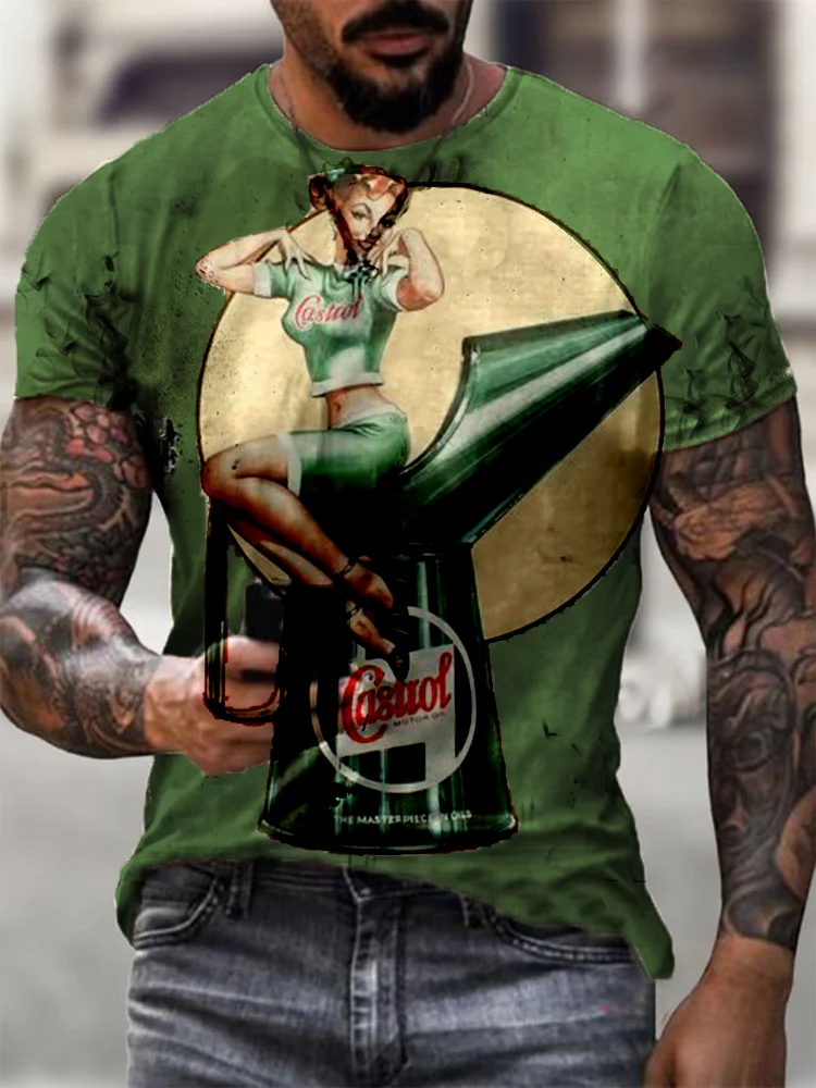 Футболка мужская с принтом мотора, масла и бензина, на лето