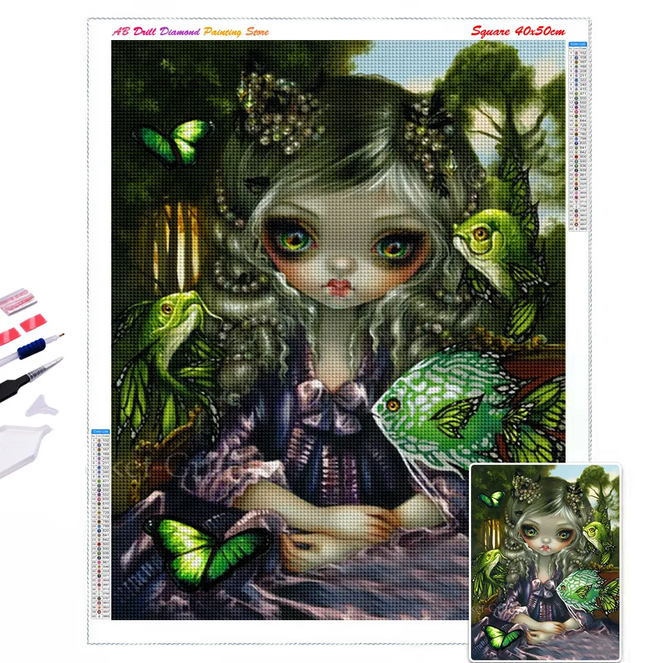 Набор для алмазной живописи ужас АВ, мультяшная девушка, искусство бриллиантов, аниме, животное, рыба, мультяшная вышивка, домашний декор, сделай сам, подарок для детей