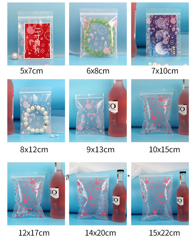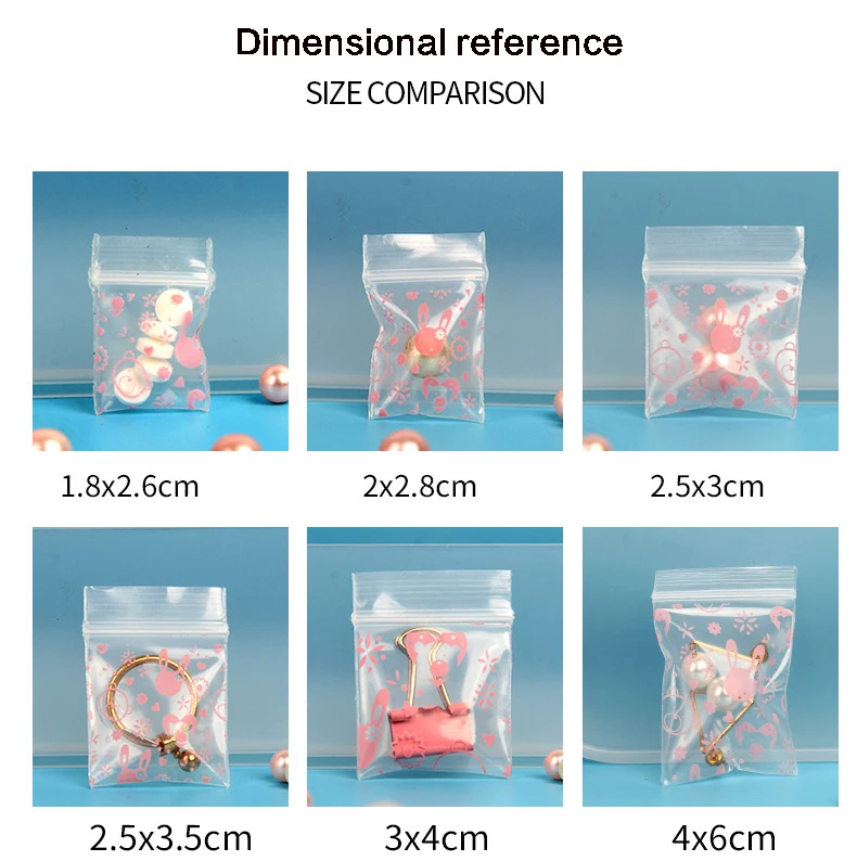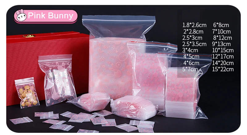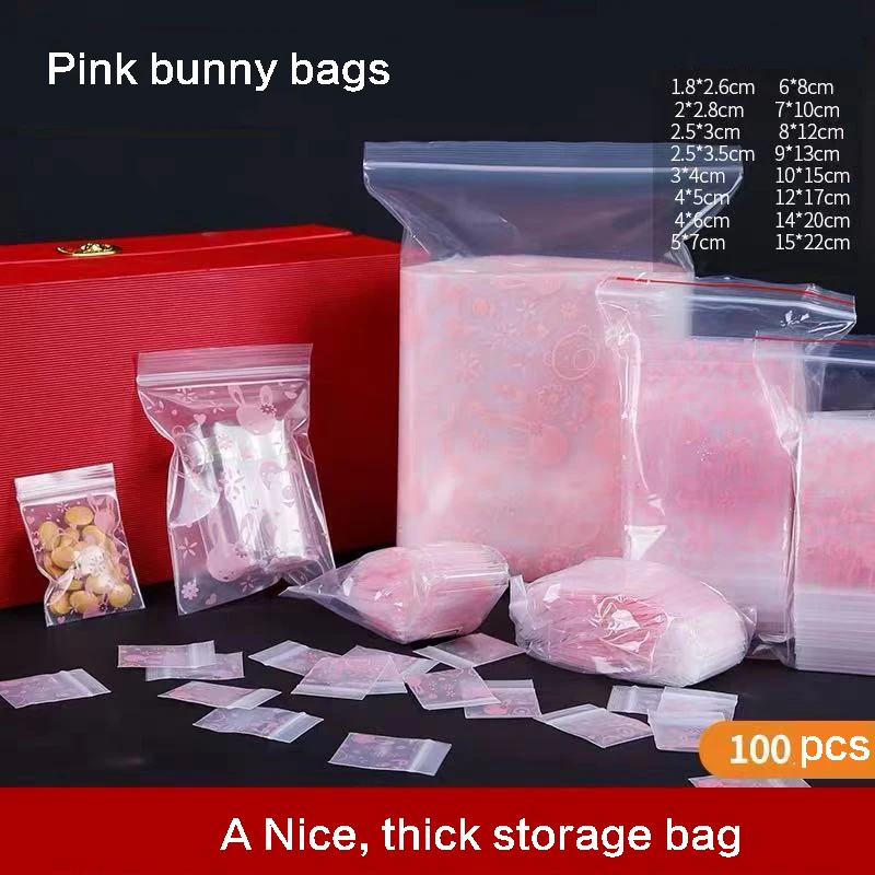 Маленькие пластиковые пакеты с застежкой-молнией и розовым Кроликом, пакеты с застежкой-молнией для упаковки таблеток, мини-пакеты с застежкой-молнией, Пластиковые Упаковочные пакеты, 100 шт.