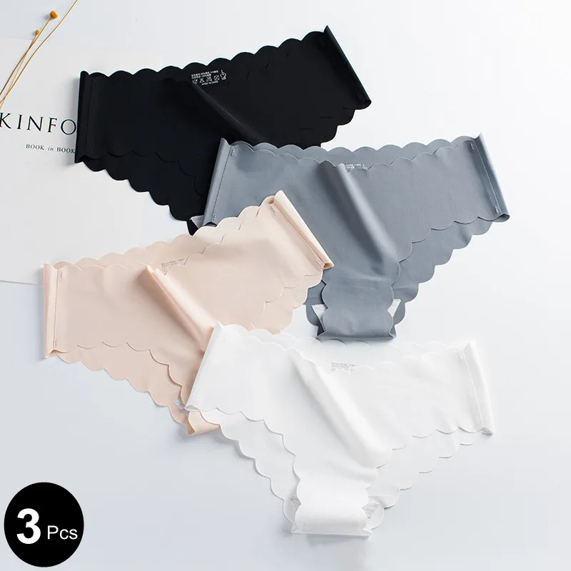 3 шт.комплект, женские шелковые бесшовные трусы с оборками