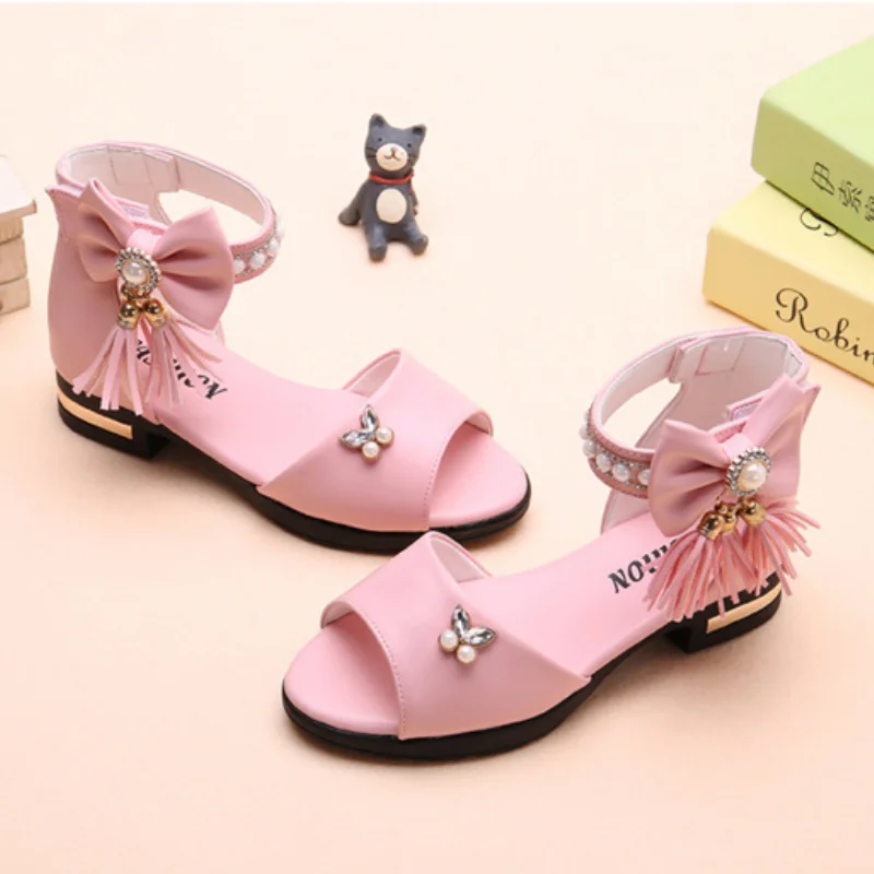 Сандалии с бантом для девочек 3, 5, 9, 10, 12 лет, милые летние пля...