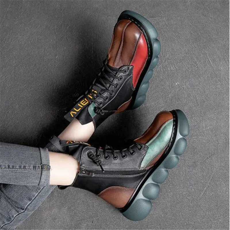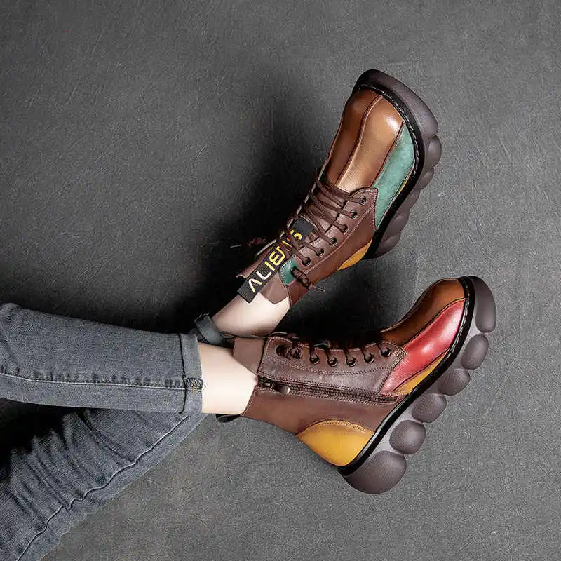 Женские ботинки из натуральной кожи, винтажные ботильоны в богемном стиле, женская обувь на шнуровке, женская обувь на низком каблуке, Botas Mujer 2021