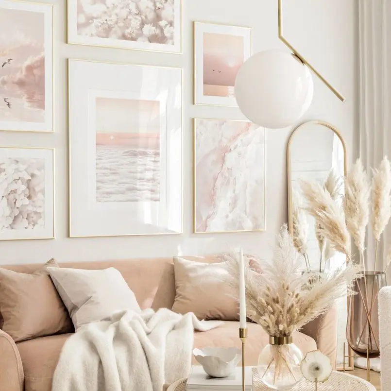 Золотая вихревая эвкалипт океан пляж птицы пион любовь настенная Ка...