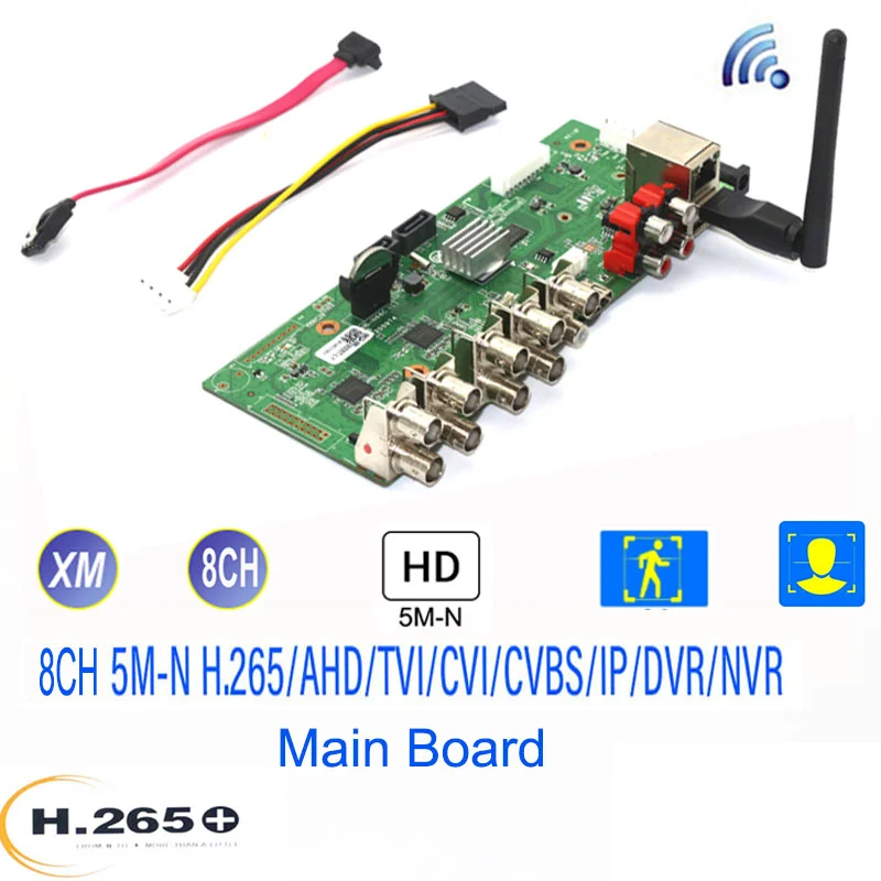 Видеорегистратор 6 в 1, гибридный модуль видеонаблюдения, Wi-Fi, H.265, 8 каналов, 5 м-n, AHD IP, распознавание лиц