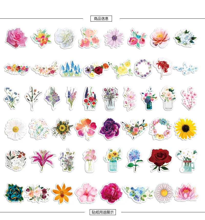 50 шт. милые маленькие наклейки с цветами и розами, наклейки для ск...