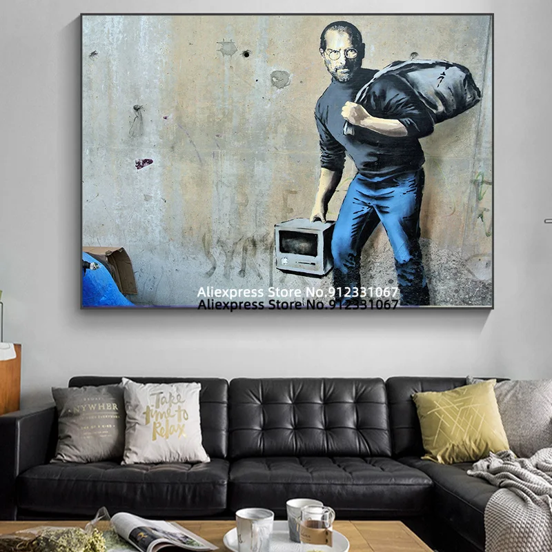 Bansky Художественная Картина на холсте, Забавный Стив, художественный портрет, настенный плакат, декоративные картины для декора гостиной