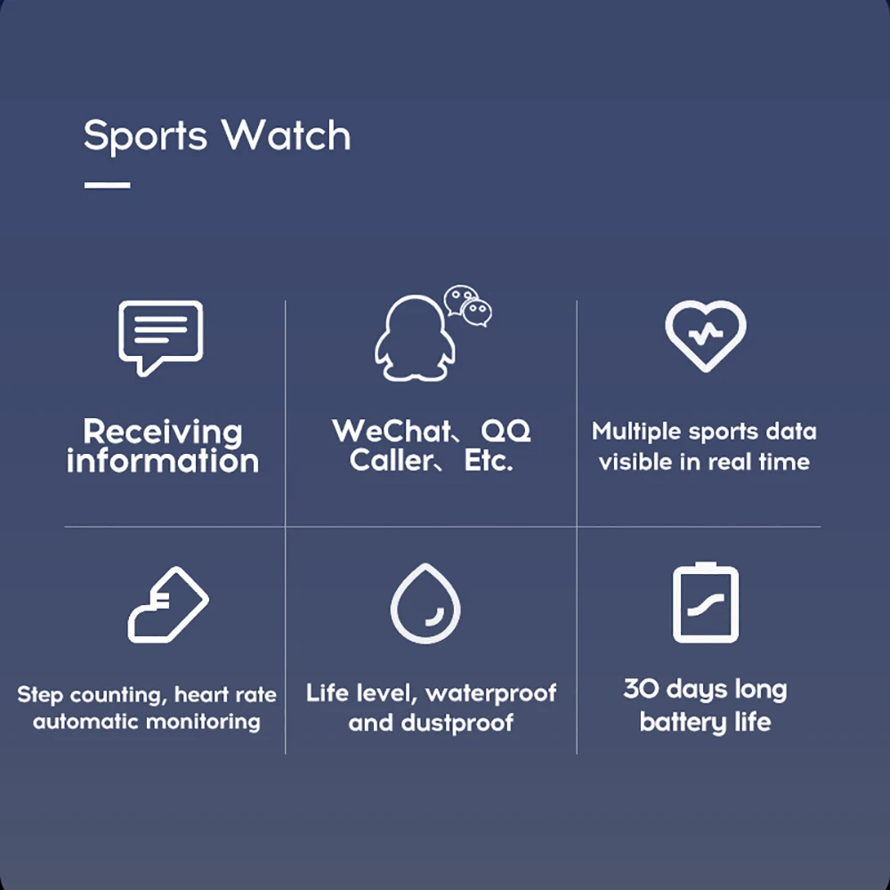 Часы могут отслеживать количество шагов, калорий, пульс, расстояние, качество сна и т. д. В то же время вы можете подключиться к смартфону для просмотра информации, удаленно фотографировать и извлекать мобильные телефоны и другие интимные и удобные функции, чтобы сделать вашу жизнь более удобной.