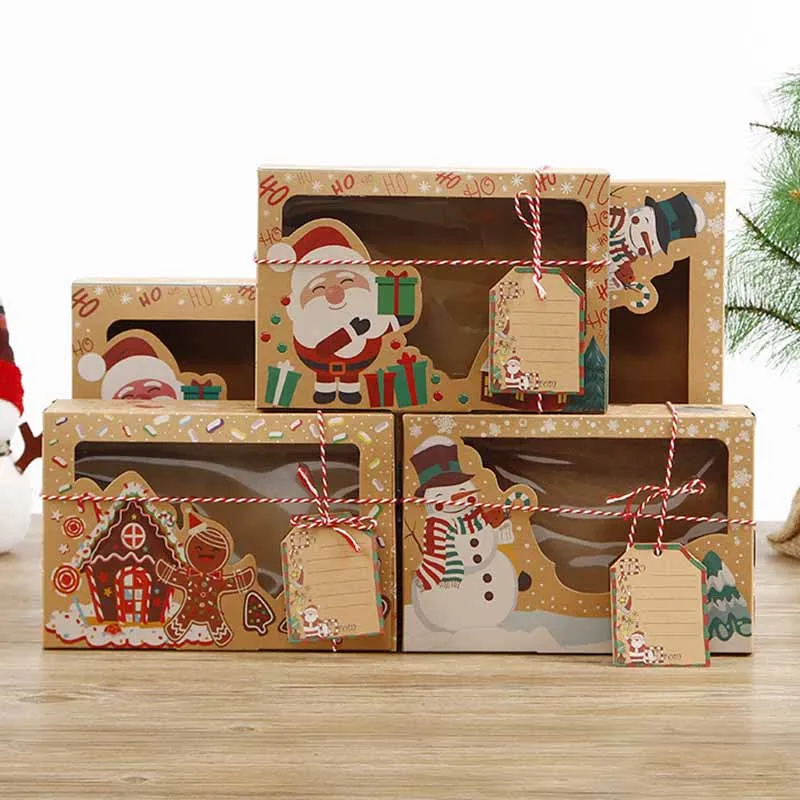 12 шт., портативная Рождественская Подарочная коробка из крафт-бумаги, держатели для конфет, коробки для печенья со снеговиком, подарочная карта Санта-Клауса